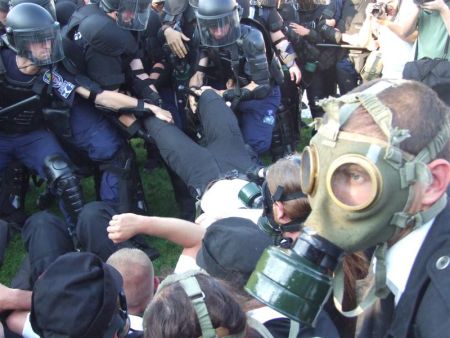 A július 4-i gárdaoszlatás embertépéssé aljasított rendőri intézkedésével harmadik világbeli szintre alacsonyította hazánkat a jelenlegi rendszer. A Gárda feloszlatásához vezető vádak alaptalanok és hamisak. A gárda helyenkénti felvonulása nem azért kelt félelmet egyes csoportokban, mert ők valaha is valami törvénytelenséget elkövettek, hanem azért mert megjelenésüket a “liberális” média félelemkeltőként harangozta be. Az a szervezet, amelyéhez a Gárda ruházatát pánikkeltésként hasonlítják, fegyveres szervezet volt. A Gárda nem az. (Fotó: Dextramedia) |
